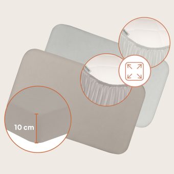 The elasticated band allows the sheet to fit the mattress easily and maintain its neat appearance. It retains its stretch even after many washes. The co-sleeper and cradle sheet fits mattresses up to 10 cm high.