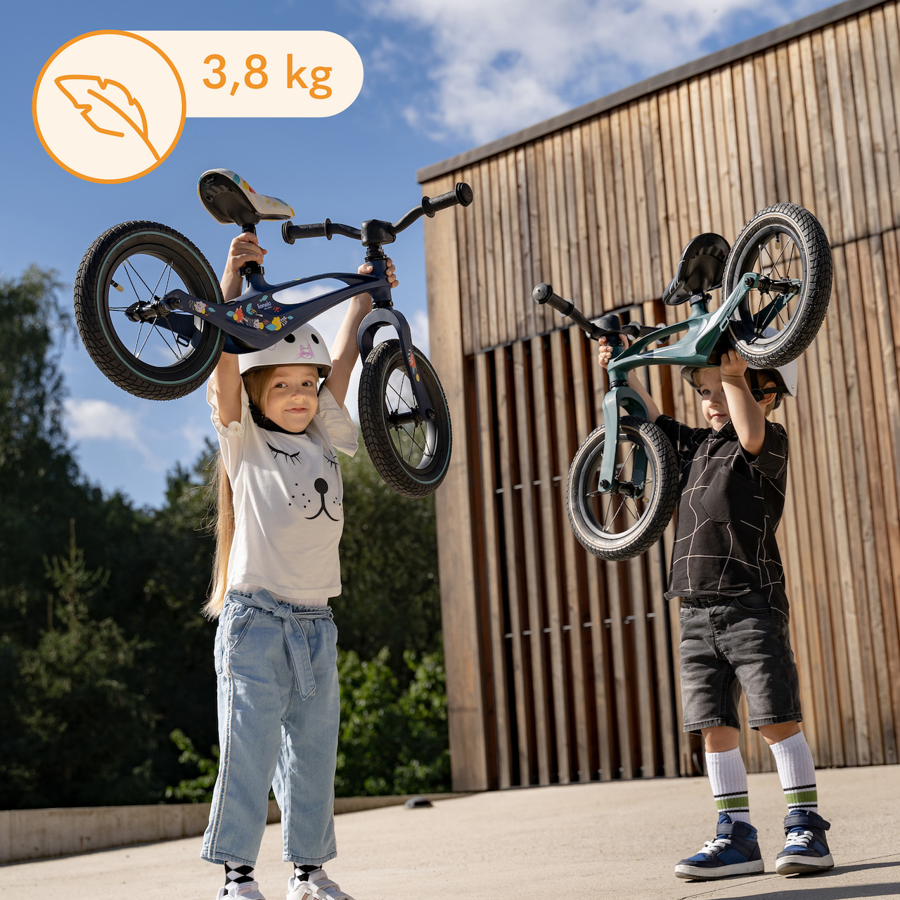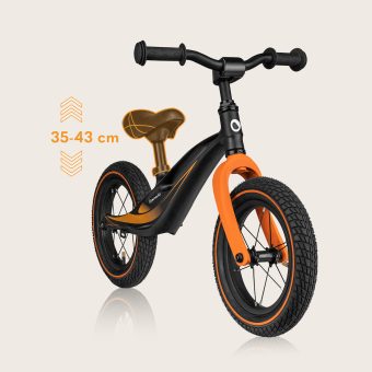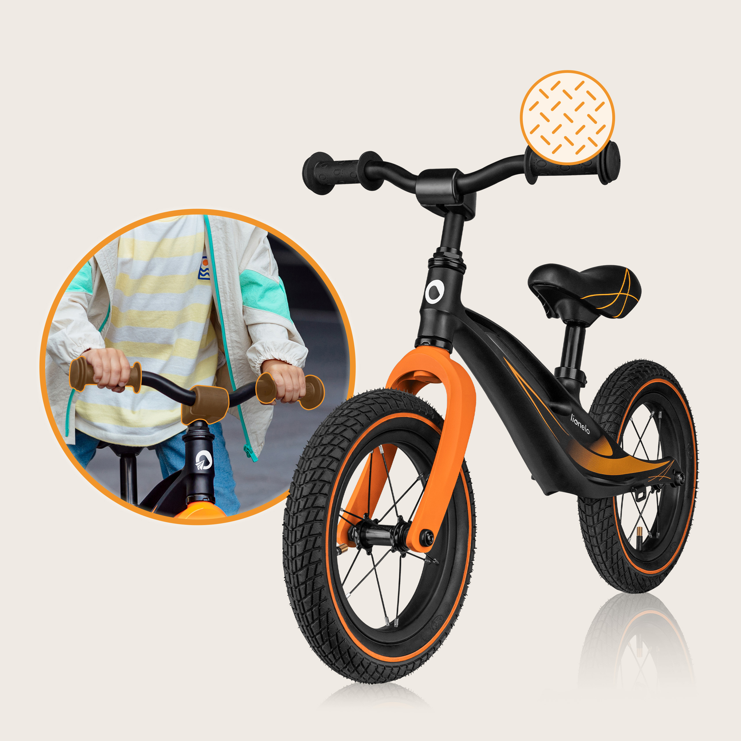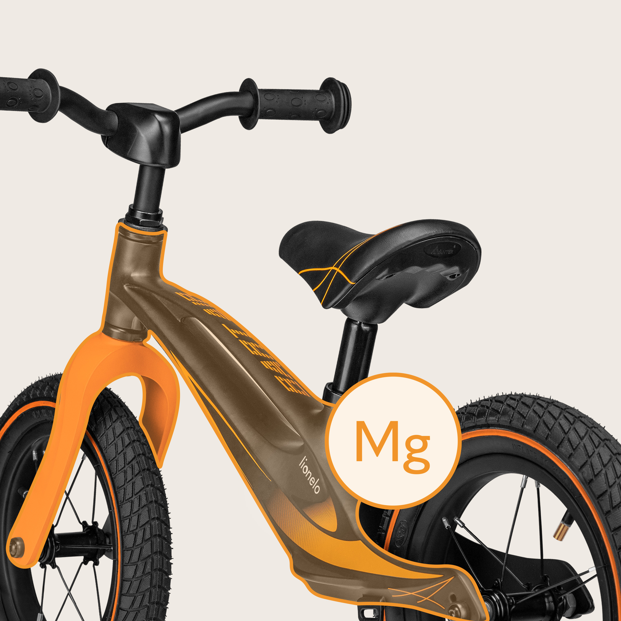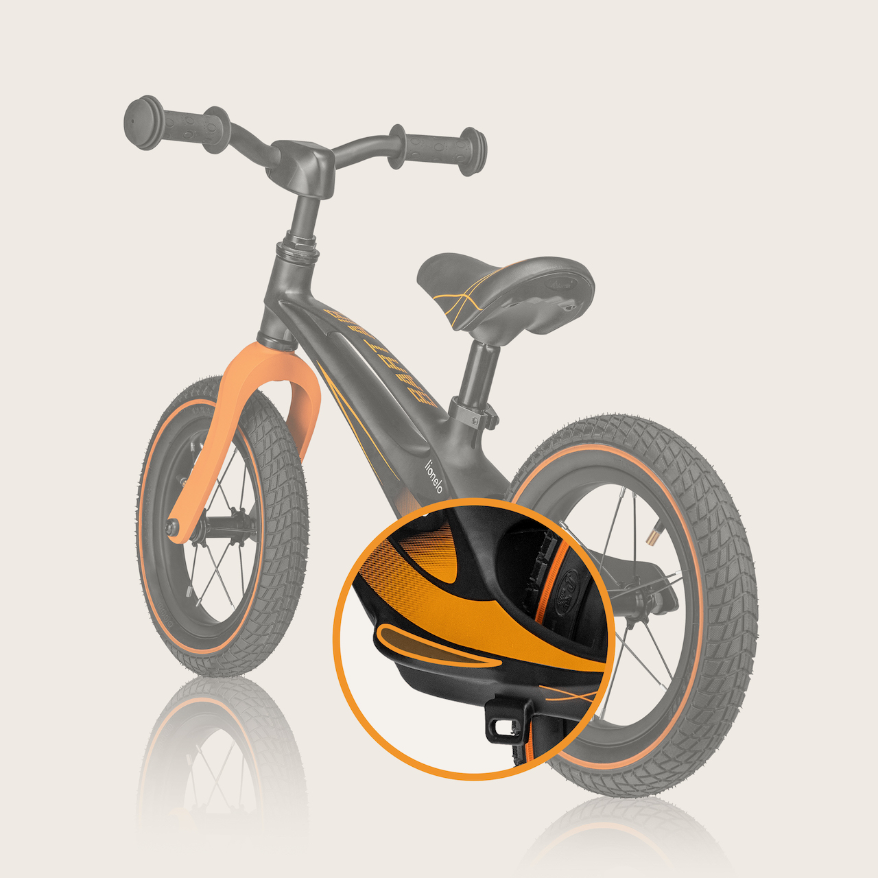 The handlebar and saddle adjustment of the Bart Air model makes it easy to adapt the settings to the needs of children with different body structures. Thanks to the anti-slip pads on the handlebars, steering the bike becomes easier and the steering lock definitely reduces the risk of injury. The frame has been given a gentle embossing that serves as a footrest.