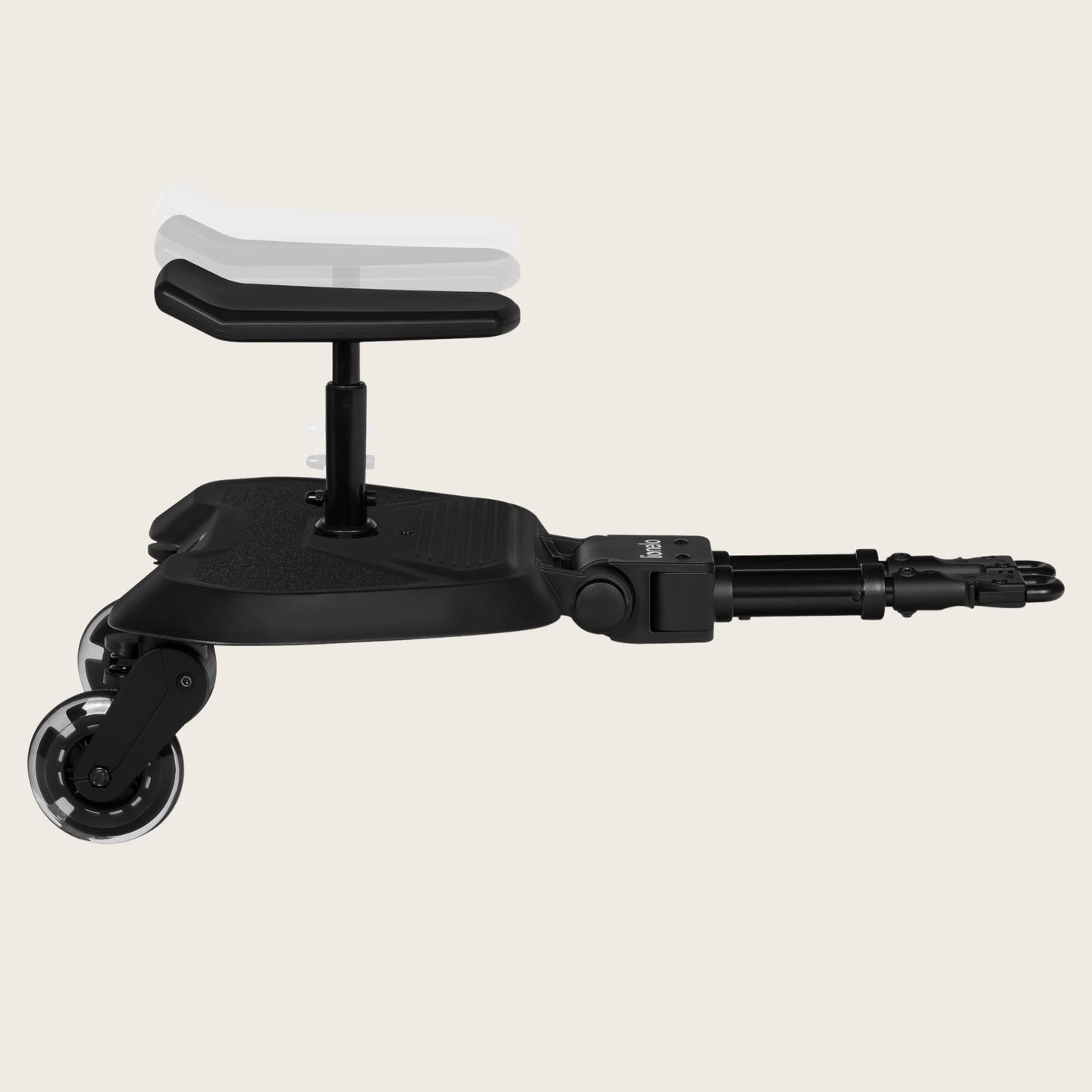 The platform’s anti‑slip surface and the removable seat make standing rides easy. Your child can choose to sit comfortably or stand and watch the world while strolling.